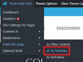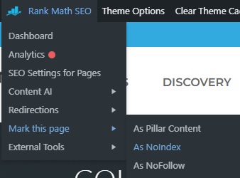 After checking Rankmath’s support about indexing, we determined all settings were in fact correct. We went into the source code of the pages and control+F and found a weird line of code relating to the rank math SEO plugin wordpress admin bar and found this “top admin bar” setting.